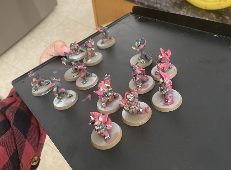 I’m going at these with as much speed as I can. With a bet like this, I didn’t want to go insane with the base coats. The team had to be painted, that’s all that was agreed. Play ready. We both had enough trust in each other to see the other’s team and decide when to call the bet.